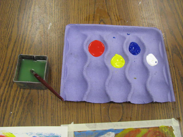 So I decided to try an experiment using some of the old overhead sheets (the boxes and boxes and boxes that our school secretary happily gave me) and some tempera paint I had: